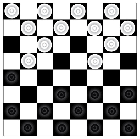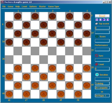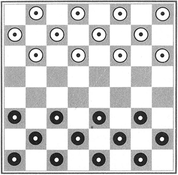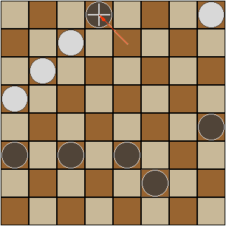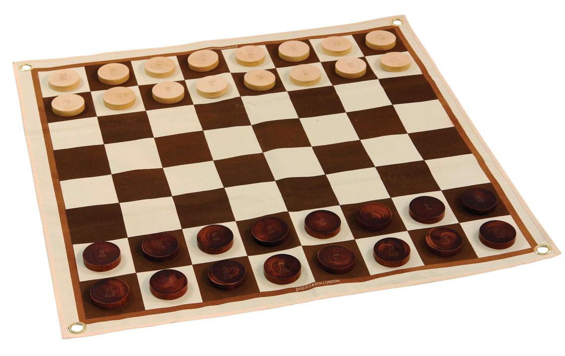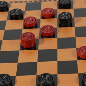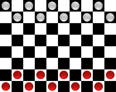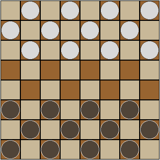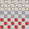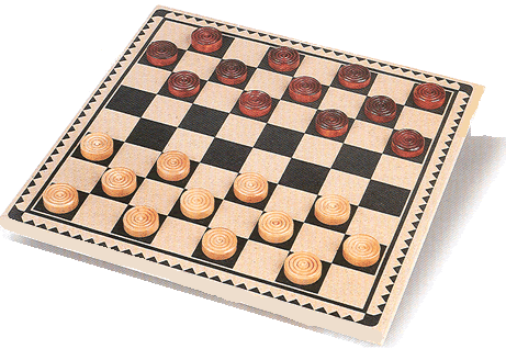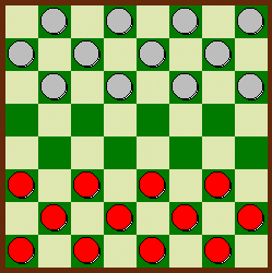 English draughts (British English) or checkers (American English and Canadian English), also called American checkers, straight checkers or, damka (Israel), is a form of the board game draughts. Unlike international draughts, it is played on an eight-by-eight squared board (with sixty-four total squares) with twelve pieces on each side. The pieces move and capture diagonally. They may only move forward until they reach the opposite end of the board, when they are crowned or kinged and may henceforth move and capture both backward and forward.