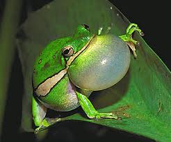 A frog is any tailless, stout-bodied amphibian of the order Anura, including the smooth, moist-skinned frog species that live in a damp or semiaquatic habitat and the warty, drier-skinned toad species that are mostly terrestrial as adults, also called true frog, ranid. any frog of the widespread family Ranidae, most members of which are semiaquatic and have smooth, moist skin and relatively long hind legs used for leaping.